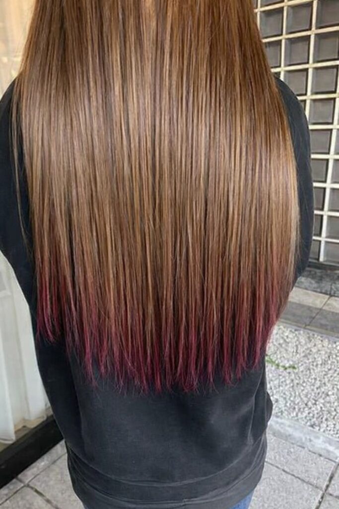 毛先にひっそりと見え隠れするカラーエクステがおしゃれです。