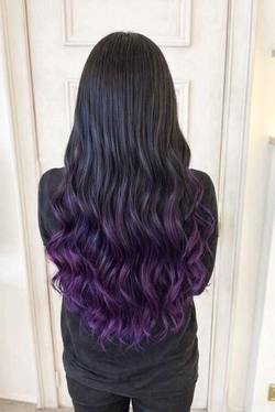 黒髪のお客様。はっきりとした紫のシールエクステを